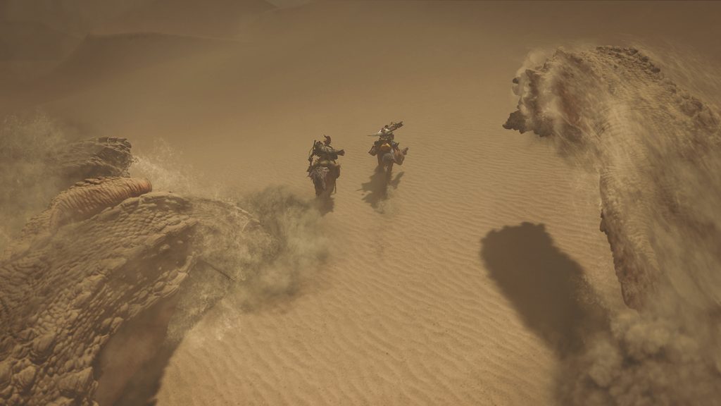 Amongst these harsh conditions, you’ll need to be wary of the Sandtide, a violent sandstorm rife with lightning. Also in the trailer, there was a scene where a large mysterious monster was attacking a Doshaguma with lightning.